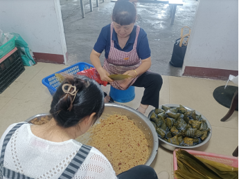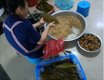 活動現(xiàn)場準(zhǔn)備了糯米、粽葉、鮮肉、紅豆等材料,行政后勤科職工十分享受包粽子的過程,數(shù)量大,任務(wù)緊的情況下還能聽到活動現(xiàn)場歡聲笑語不斷,仿佛包的不是粽子,而是快樂與愛心。通過此次活動,既傳承了傳統(tǒng)技藝,又切身感受到了濃濃的節(jié)日氣氛,很有意義。
